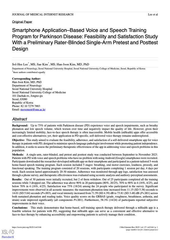 Seoul National University HospitalQ3 Development of MVP for PD speech-language treatment -